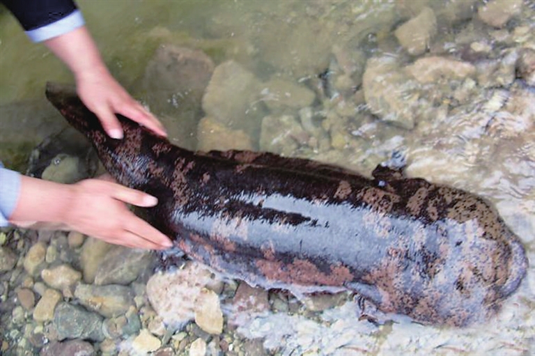 “娃娃鱼”是为国家二级重点野生保护动物中华大鲵,生活在淡水区,是中国特产的一种珍贵野生动物,也被列入世界自然保护联盟濒危物种红色名录。“娃娃鱼是3亿年前与恐龙同一时代生存并延续下来的珍稀物种,也是现存最大的两栖类动物,被称为‘活化石’。泾河泾源段水质清澈,具备中华大鲵的生存条件。”六盘山林业局副局长王双贵说,“固原周边没有人工养殖中华大鲵的历史,这条中华大鲵很可能是野生的。根据测算,这条娃娃鱼的年龄在50岁以上。”