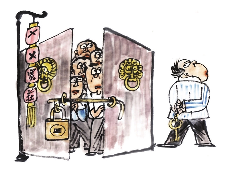 4月16日,云南曲靖。60多人到一家农庄吃饭,等了40分钟不上菜,准备换地方吃时,商家将大门锁住,并开车堵门不让走。