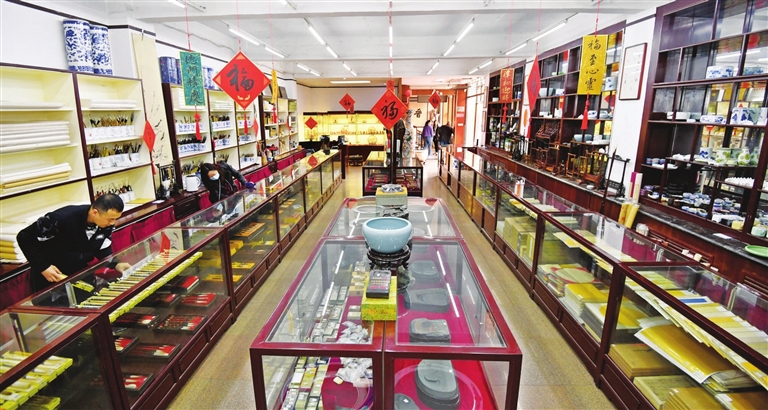 晋宝斋工艺礼品部汇聚了玉雕、石雕、贝雕、刺绣、陶瓷、景泰蓝以及漆器等全国各地风格不同、门类齐全的工艺礼品上千种。