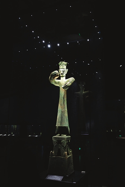 1986年出土于三星堆2号“祭祀坑”的青铜大立人。 新华社 发