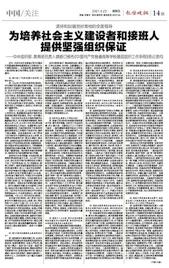 坚持和加强党对高校的全面领导~~~——中央组织部、教育部负责人就修订颁布《中国共产党普通高等学校基层组织工作条例》答记者问