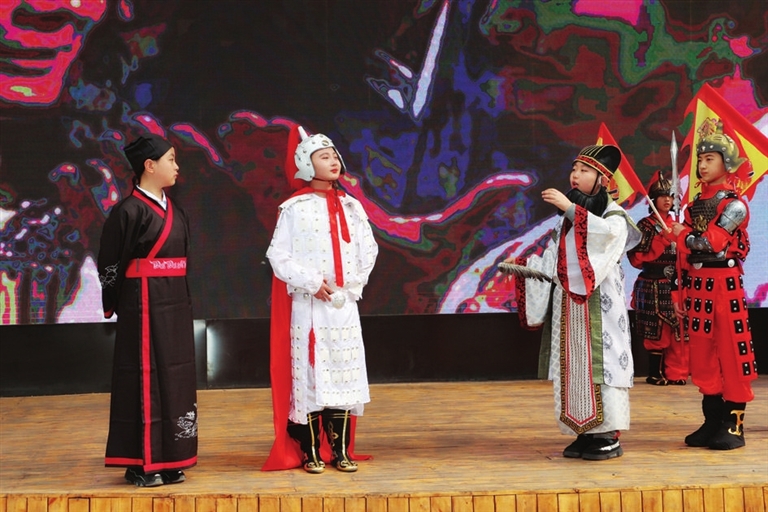 五年级学生赵佳严扮演的人物是诸葛亮。她说,诸葛亮是中国传统文化中忠臣与智者的代表人物,通过这次扮演,她对诸葛亮产生了浓厚的兴趣,今后一定会多读书多了解。