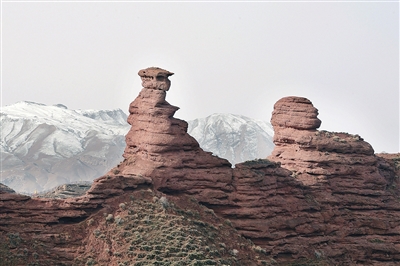 平山湖大峡谷位于甘肃省张掖市甘州区境内,其地质构造是在中生代侏罗纪至新生代第三纪沉积形成的红色岩系,又称“红色砂砾岩”。峡谷以沟壑为基本特征,山势低且平缓,以沙石山为背景,红白和赭红色为主色调,造型奇特,十分壮美。 新华社 发