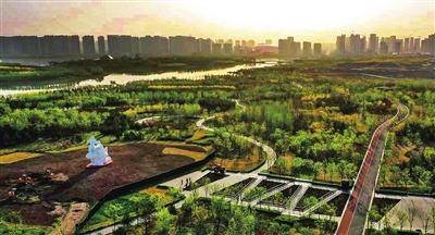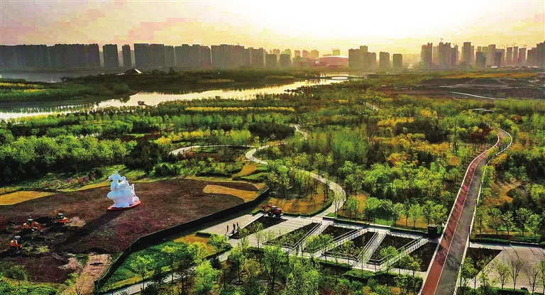 4月27日,在晋阳湖公园里,刚修复好的“晋泉之声”雕像矗立在南广场,一旁的工程机械正忙着平整地面,为绿化美化做准备。该雕塑原位于五一广场,经切割、吊运和搬移,最终与游客相会于晋阳湖公园。 韩双喜 摄
