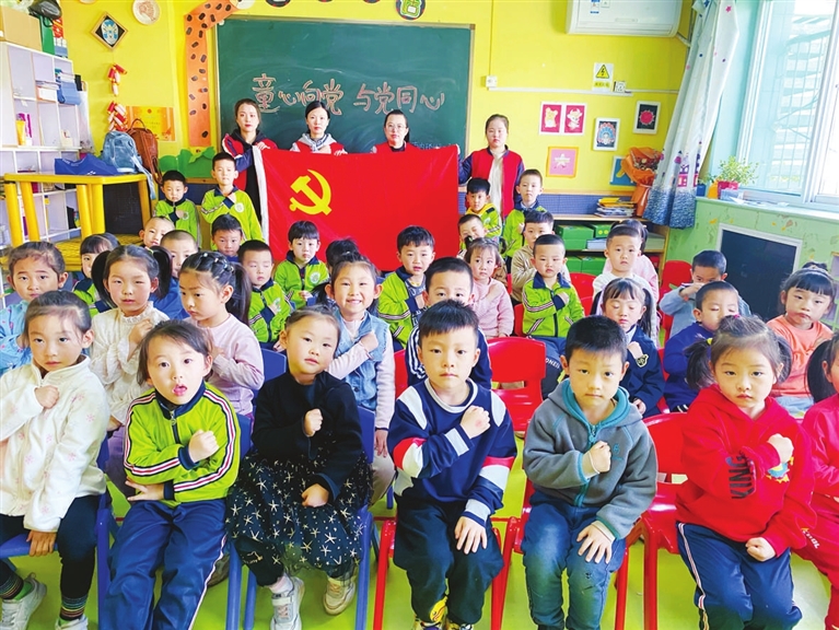 4月28日上午,南内环街三社区联合驻地单位金贝贝幼儿园开展“童心向党 与党同心”党史学习教育课。随着党史学习教育课的开展,一颗颗红色的爱党爱国种子将在孩子们心中萌芽壮大,使党史教育活动深入“童”心。