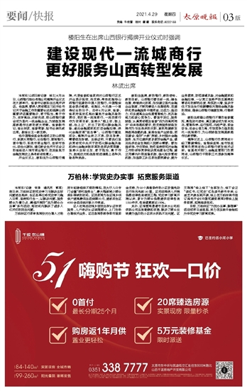 建设现代一流城商行 更好服务山西转型发展