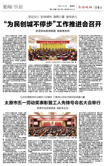 太原市五一劳动奖表彰暨工人先锋号命名大会举行