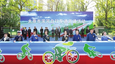 建成开通的滨河自行车道,沿汾河东、西两侧设置,北起上兰汾河漫水桥,南至迎宾桥以南2公里处,全长75公里,车道净宽5—8米,是现代综合立体交通体系的组成部分,车道连接城市主城区、贯通城市主干道,与跨汾河桥梁、滨河东西路人行天桥互联互通,与公共交通便捷接驳,为广大群众交通出行提供新选择,可进一步规范滨河东西路自行车通行秩序,有效纾解省城南北交通压力;是打造城市“慢行系统”的引领示范,设计时速控制在每小时15公里以内,建成的滨河自行车道和东西山公路自行车赛道形成了“一轴”“一环”共305公里的“慢行系统”,在此基础上将逐步推动构建全市域“多脉络”自行车交通路网;是引导全民健身运动的重要工程,按照“专用性、安全性、智慧性和环境友好型”要求,路面采用绿色环保、防滑耐磨新型材质,为广大群众提供更安全、更舒适的自行车骑行场地,对于唱响全民健身主旋律,推动体育事业和体育产业发展,举办全国有影响力的公路自行车赛事,将发挥重要作用;是满足人民群众高品质生活需求的民生设施,着眼打造“玫瑰之城、浪漫之都”,同步对已建成20余年的汾河景区一、二期景观提质升级,增添多功能洗手间,提档露天游泳场,增设11座观景休憩平台,设置30余个出入口,更加方便广大群众进出汾河景区,更好满足市民观光、休憩、健身需求;是推动“碳达峰、碳中和”的有力举措,车道穿梭于碧波绿荫之间,让广大群众在路随景移中亲近自然,引导全民低碳出行、健康出行、绿色出行,培育绿色健康生活理念,营造低碳生活新时尚,持续改善省城生态环境质量。