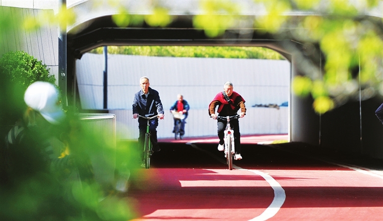 一旁的王先生笑着肯定:“是啊!相信有了滨河自行车道后,这种健康出行方式会被更多人选择。”