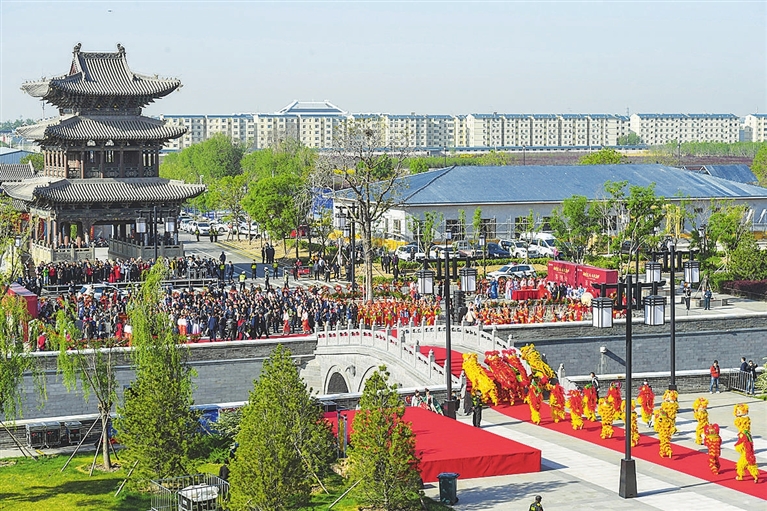 开城仪式上,大型无人机表演《有凤来仪百鸟秀》,金色凤凰在百鸟簇拥下从古城进贤门(南门)腾空而起,象征太原古县城飞得更高、更远!仪式结束后,进贤门内举行“社家锣鼓”“祥狮献瑞”表演,热情欢迎游客入城。