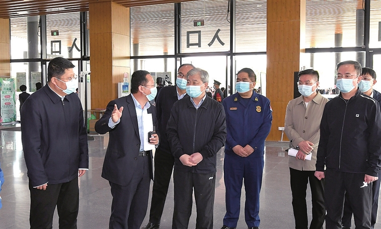 火车站是外防疫情输入的第一道关口。罗清宇来到太原南站西广场,详细了解进出站车次、客流数据,认真察看疫情防控人员配置和措施落实情况,强调,要以高度的责任感和使命感,对所有来并返并人员全覆盖体温检测、健康码核验,严格消毒通风等措施,以战时状态切实把关口守住守好。罗清宇还与正在执勤的公安民警、武警官兵亲切握手,向他们致以节日的问候,鼓励大家坚持“四警联勤”的好经验、好做法,紧盯重点部位和关键环节,加强联合武装巡逻,强化应急演练,提升处突能力,忠于职守、严密防范,扎牢安保维稳第一道防线。