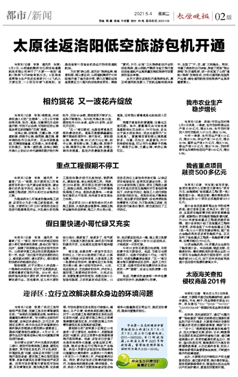 “五一”假日期间,也是观赏鸢尾花海的最佳时机。鸢尾花像蝴蝶翩翩轻舞于翠绿的草坪中,美不胜收。晋阳湖公园、学府公园、狄仁杰文化公园、和平公园、晋阳街公园、文瀛公园、西海子公园、南海子公园、饮马河公园、东篱公园均有栽植。现在开放最盛的是德国鸢尾,还有部分黄褐鸢尾也刚刚进入花期。