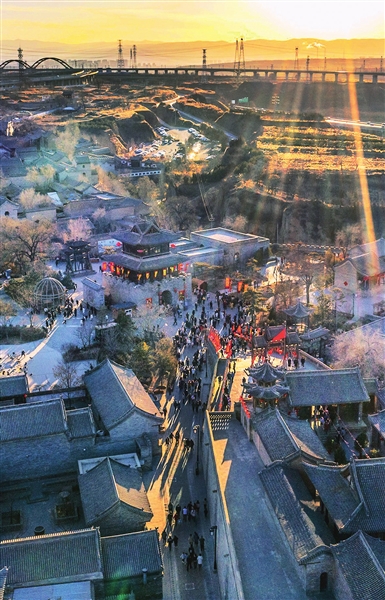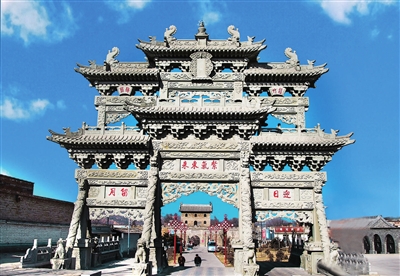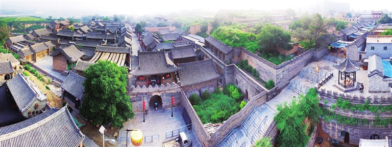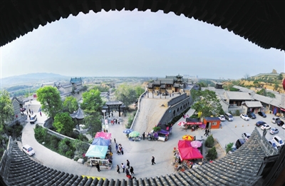 从市中心驾车出发,进入阳兴大道,30分钟车程后,就可以看到一个庞大的堡墙阁楼古建筑群,在蓝天白云映衬下,雄浑的古城堡以及周遭黄土沟壑构成一幅美丽风景画,这里就是青龙镇。