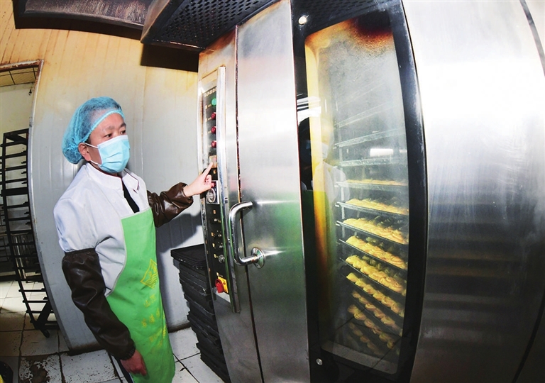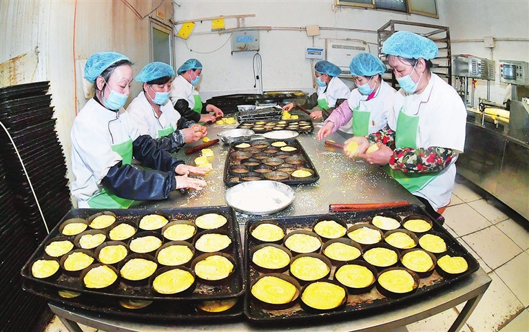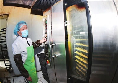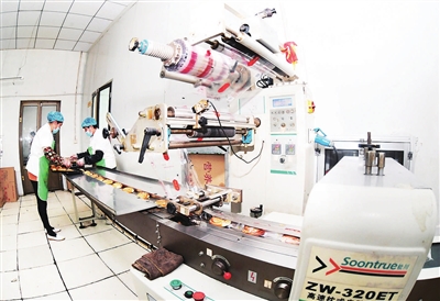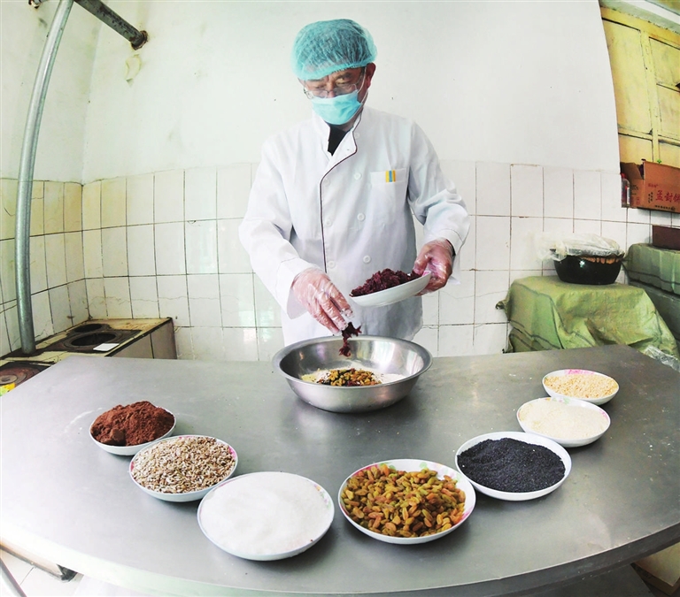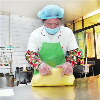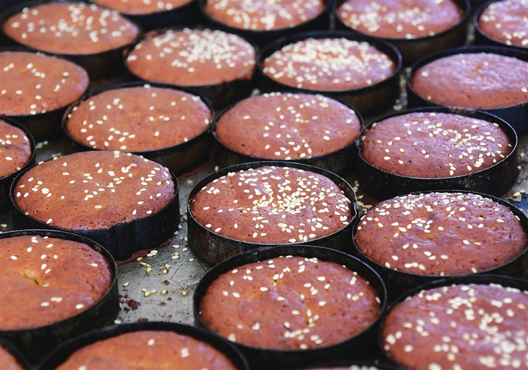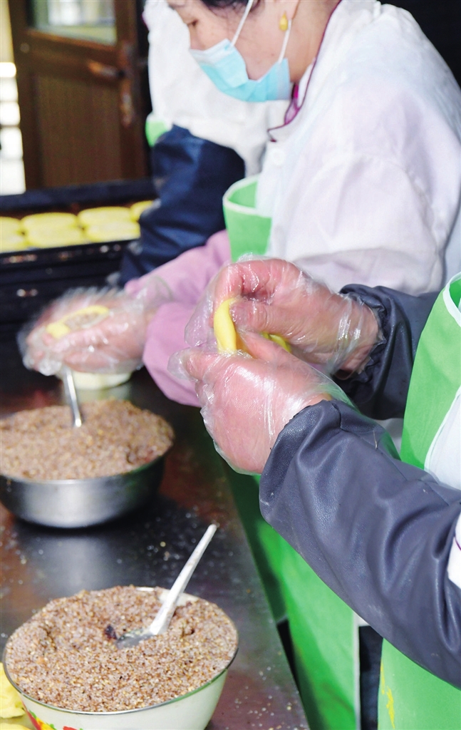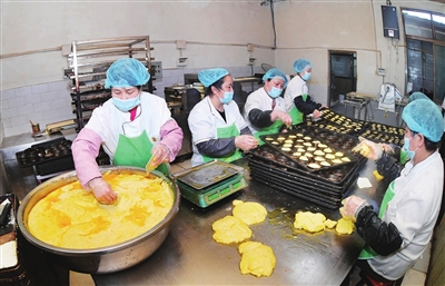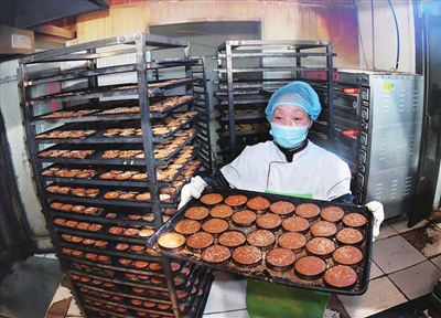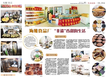 在清徐县,每逢中秋节,家家户户都要烤制月饼,俗称“打月饼”,打出的月饼香甜,空心酥脆,极具地方特色。空心粗月饼既是一种地方特色食品又是一种传统文化符号和实物见证,是非物质文化遗产“见人见物见生活”的实例体现。随着时代的发展,如今学习传统手工技艺的人越来越少,传统手工制作技艺面临逐渐消失的危险。海维食品厂在传统饼业的基础上,一直坚持传承清徐空心粗月饼制作技艺,并常年生产、展示、销售,承担起了该项目的传承保护职责。2020年12月,空心粗月饼制作技艺被确定为市级第七批非物质文化遗产保护项目。清徐空心粗月饼,用料精细,配料讲究,风味独特。在制作上选用纯天然白芝麻、黑芝麻、花生仁、葵花籽仁、葡萄干,配以白糖、红糖、玫瑰酱和熟面粉做馅料。馅料的配制是一个重要的环节,配馅时先用慢火将芝麻和面粉炒熟,花生仁用刀切碎,然后将所需馅料按一定比例分别倒入一个大盆内,搅拌均匀,馅料就配制好了。和面也很讲究,以10斤面粉为例,称好放入面盆中,中间开洞,倒入3.5斤热油,放少量碱面,先将面油搓匀,再将3.2斤事先熬好晾凉的花椒大料水分次加入,面揉搓到软硬适中,均匀分成每个65克的面团,捏成面皮,加入30克的馅料包好,压进专用木刻月饼模具,之后磕在案上出模。开温火,将专用圈只和鏊烤热,然后把包好出模的月饼上鏊烤制。制作过程中,中间的糖馅溶化紧贴在面层上,蒸汽将饼面撑开形成空心,八九分钟后,一炉空心粗月饼就烤制完成了,现在用食品专用烤炉,更卫生快捷。海维食品厂制订五年保护计划:2020年对清徐空心粗月饼传统制作技艺和历史文化进行整理和记录;2021年建档工作,对相关文字、图片、传统器具建立专门档案和展柜;2022年代表性传承人定期举办传承培训活动,建立生产性保护基地,培训2到3名新一代传承人;2023年加强与食品研究部门合作,对馅料和面料营养搭配进行研究,在传统配方的基础上形成标准化配比;2024年加大在传统媒体和网络的宣传力度,积极参加各种宣传展示展销活动,让非遗文化和产品融入现代生活。