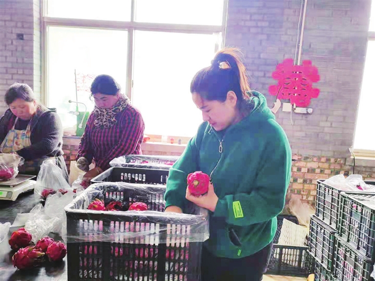 “这筐火龙果得挑一挑,个头太小的不能发给客户,别砸了咱们的招牌!”在艺博的车间里,数十名妇女唠着家常,一边熟练地将一筐筐蔬果按订单要求,按份称重打包。她们都是附近的村民,农闲时,就在张文静公司里帮忙。