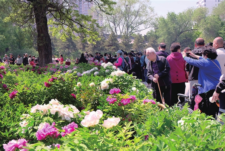5月5日是立夏节气,我市天气晴好,气温回升。迎泽公园牡丹园内,200多个品种、3000余株牡丹竞相盛放,吸引了大批游客前来观赏拍照。 全媒体记者 赵世凯 摄