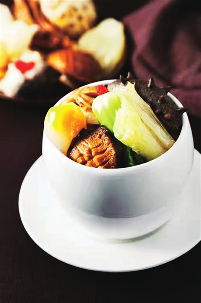 用胡萝卜雕成的红色长龙,昂首弓颈,前爪曲张,后爪用力蹬向后方,做飞腾状;长龙的身侧配以绿蔬制成的祥云,给人一种欲腾云而去的感觉,而在碟盘中央是两小盘金灿灿的鸡米花,四周辅以外皮晶莹剔透的翅中,色彩艳丽,香味扑鼻……这是山西大酒店餐饮部最新研发出的凤翅鸡米花,集传统与现代、中式与西式于一体,让食客赞不绝口。如今,通过不断的创新,山西大酒店在以高档粤菜、精品淮扬菜及新派晋菜为主打的前提下,推出新版皇家佛跳墙、滋补老火靓汤、国宴烤鸭、泉水煮羊肉、网红剔尖面等一系列具有自身特色及满足不同人群口味的“融合菜”。在“老品牌、老味道”的基础上,山西大酒店尝试挖掘产品的多重属性,保持30年来出品精华,合理开发文创产品,并将自制食品、特色产品等包装化、产品化,线上、线下双渠道推广,形成特色品牌和规模销售。另外,为能让“品牌”走出去,下一步,他们将组织成熟的管理及技术团队,针对酒店、物业、餐饮、食堂等相关行业,输出“软实力”,增加新的利润增长点;他们还计划寻找合作伙伴,成立精品连锁店,将餐饮出品有效整合为标准化、成品化的精品,把餐饮产品推向更广阔的天地,最大限度地提升山西大酒店品牌。
