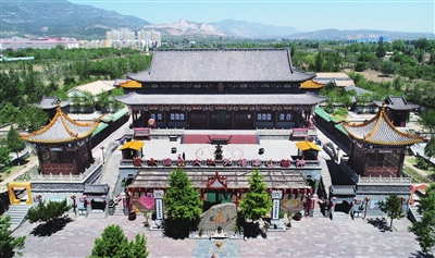 进入山门,就来到了中华傅山园主景区,这里的建筑群也是仿明式建筑风格,文化牌坊、状元桥、傅公祠大殿等建筑,都位于中轴线上,其他单体建筑在中轴线两侧,左侧依次为农耕院、文圣阁、老子阁、书画院、哲理院、膳食院等;右侧依次为民俗院、观音阁、老爷阁、诗文院、医药院、非遗院等。民俗院在省市妇联支持下集中进行家风家教展览,宣传德孝文化、忠义文化、诚信文化、廉政文化等;非遗院展示傅山园获得的国家级、省级非物质文化遗产项目“头脑(八珍汤)”和傅山拳法及剪纸、戏曲等民俗文化。这里的建筑主次分明,依据园区前低后高特点,处处有院、院院有景,变化多而不乱,颇有园林的复杂性和趣味性。