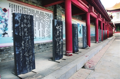 “石道人”后有一组窑洞,称为洞庭院,门阔五间,内设暗堂。堂内设展厅,全面展示了傅山生平事迹以及在思想、学术、文化、书法、绘画、金石、训诂、诗文、戏剧、武术等方面的学术成就和艺术成就。