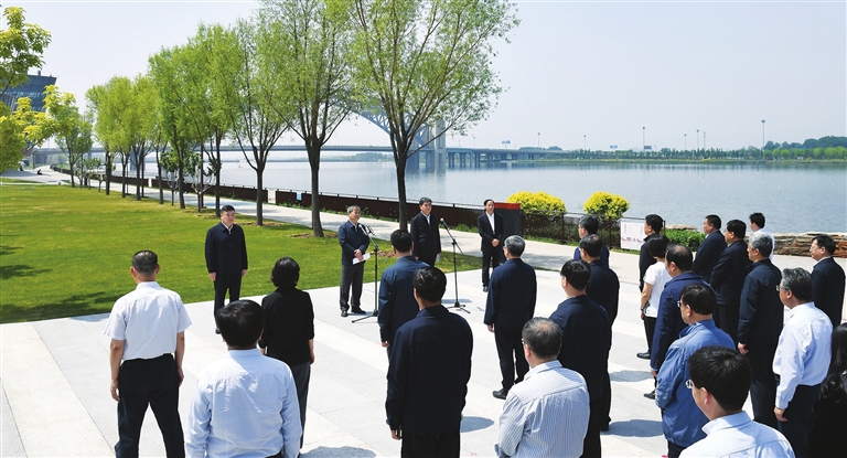 位于汾河晋阳桥段东岸的“汾河晚渡”景点,河面波光粼粼,画舫古朴典雅,晋阳桥雄伟绚丽,天际线、山脊线、水岸线层次分明,呈现出一幅河、舫、桥、山浑然一体的秀美画卷。“四治”工作推进会在这里召开。罗清宇指出,2017年6月以来,习近平总书记两次深入太原视察,这在我市发展进程中、党的历史上具有重大里程碑意义,特别是习近平总书记坚持治山、治水、治气、治城一体推进,再现“锦绣太原城”盛景的殷切嘱托,体现了党的领袖对太原发展的关心厚爱,是我们做好城市工作的根本遵循。连日来,市委组织开展重点工业项目、“四治”一体推进督导,就是要以践行领袖殷殷嘱托的实际成效,激励引导全市上下进一步统一思想认识,领悟精神实质,保持战略定力,不断推动习近平总书记视察山西重要讲话重要指示在太原落地生根、开花结果,努力再现“锦绣太原城”盛景。要贯彻新发展理念。完整准确全面把握创新、协调、绿色、开放、共享的深刻内涵,深化习近平总书记关于城市工作的重要论述,深刻认识城市是经济发展的主引擎、扩大内需的主战场,强化系统理念,拓宽发展视野,大力实施城市更新行动,既注重增量扩张,又注重存量提质,做好市域一体规划,进一步拉开城市框架,优化完善功能布局,形成更加完整的空间发展体系。要坚持人民至上。通过党史学习教育进一步增强宗旨意识,强化“人民城市人民建、人民城市为人民”理念,始终把人民放在心中最高位置,努力建设宜居宜业的人民城市,不断实现好、维护好、发展好最广大人民根本利益,不断提升人民群众的获得感幸福感安全感。要一体推进“四治”。坚持当下治与长久立结合,统筹山水林田湖草系统治理,强化“五水同治”,坚持空气质量改善优先,为民创城不停步,力戒形式主义、官僚主义,不断推动全域治山、系统治水、强力治气、综合治城取得新成效。要传承历史文脉。正确处理城市改造开发和历史文化遗产保护利用的关系,保历史、保格局、保文化、保文明,延续历史风貌,留住城市记忆,擦亮历史文化名城名片,不断增强太原的吸引力、影响力,以优异成绩庆祝建党100周年。