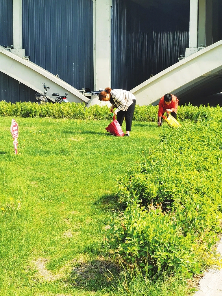 5月12日清晨,在漪汾桥北汾河景区西岸,记者看到一位女士,手里握着一把野菜,正往景区外走。打听野菜来处,该女士介绍:“绿地里还有,但不好找了,人们都挖得差不多了,一早上就找了这么一小把。”