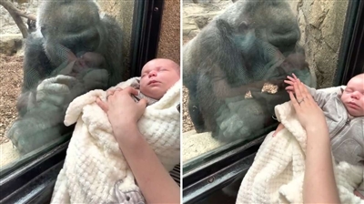 母爱是相通的!雌大猩猩深情注视5周大婴儿