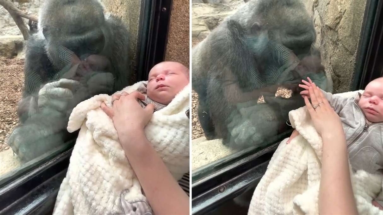 艾米丽·奥斯汀带着5周大的儿子坐在波士顿富兰克林动物园的大猩猩围栏旁边。一只39岁的西部低地大猩猩琪琪走了过来一直深情地注视着婴儿。期间琪琪还试图握婴儿手,隔着玻璃舔孩子。大约4分钟后,琪琪把自己的孩子巴勃罗抱起来给参观者看。