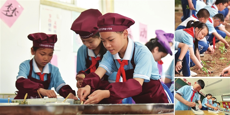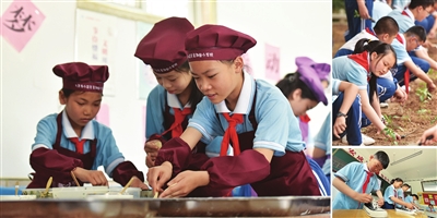 校园内有一片约200平方米的种植园,六年级的孩子们正在种西红柿苗、茄子苗。挖坑、种苗、浇水,他们呵护小苗的动作认真谨慎,充满对生命的期待。校长王建平说:“这个小小的种植园,让孩子们有机会走出课堂,走进自然,一起亲身体验播种的激动,感悟自然生命的成长,在精心呵护的过程中,共同感知等待的滋味、付出的快乐、责任的意义、坚持的重要。”