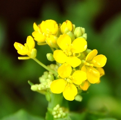 我把白菜心放到一个水杯里,续上清水,静待花开。一天后,淡黄色的菜叶变绿了,显示出茁壮的生命力。又过了几日,花茎长高了一大截,只是还没有开花,我也不着急。果不其然,几日后,绿色的菜叶长大了,众星捧月似的护卫着绿色的花茎。花茎上有几十个花苞,其中几个已经开了,淡淡的小黄花清新而淡雅。又过了几日,花苞全开放了,黄灿灿的聚成一个锦绣的花团。白菜花和油菜花很像,它们貌不惊人,却有着倔强的生命力,有点水就能活,给点阳光就灿烂。
