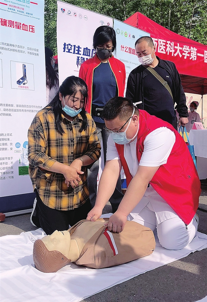 5月17日是世界高血压日,山西医科大学第一医院开展主题为“准确测量、有效控制、健康长寿”义诊活动,为市民提供义诊、宣教、健康咨询等服务。活动旨在让广大市民进一步了解高血压防治知识,减轻因高血压等慢性病带来的伤害。 邓寅明 摄