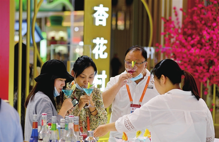 山西展区的邻居是湖北展区。展区上方大书“浴火重生再创辉煌”字样,宣誓经历了抗疫大战的湖北已经走出逆境。