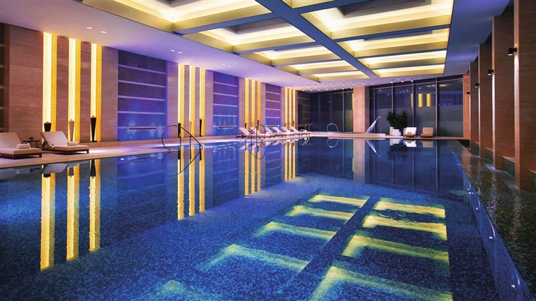 酒店康体休闲中心,无论春夏秋冬,宾客都可于酒店7层25米长的室内恒温游泳池游泳健身。温暖的自然阳光穿过泳池独特设计的玻璃屋顶,呈现静谧氛围。功能齐全的高级健身设备、瑜伽室、有氧健身室和私人教练一应俱全,帮助宾客重振愉悦精神、安享健康生活。健身中心更衣室及休息区更配有冷热按摩池、桑拿、蒸汽浴室和传统中式热茶为您扫去一天疲劳。