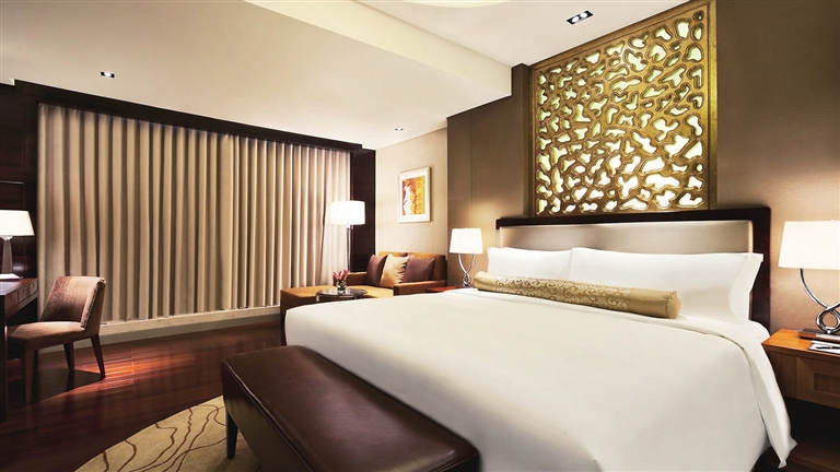 酒店房间均设有宽敞的工作台和休息区42寸纯平液晶电视、咖啡台、室内保险箱、IPTV互动电视和iRiS管家系统等现代化设施。房间宽敞的大理石浴室还配备了独立热带雨林淋浴间和浴缸。套房客人还可体验特别定制的洗浴产品,享受独一无二的醇美芳香。