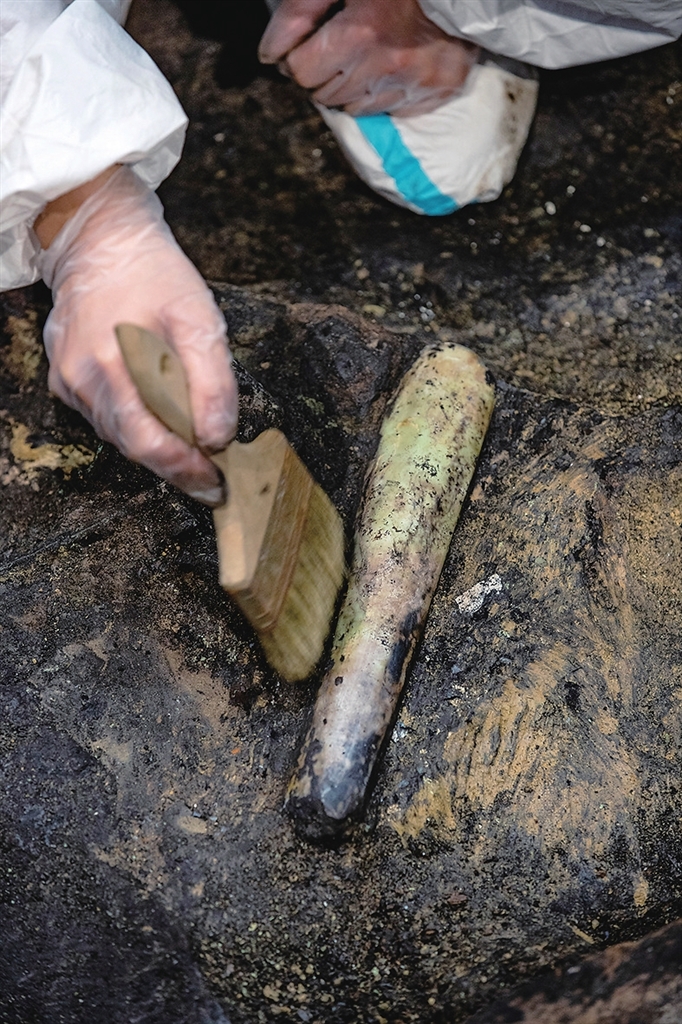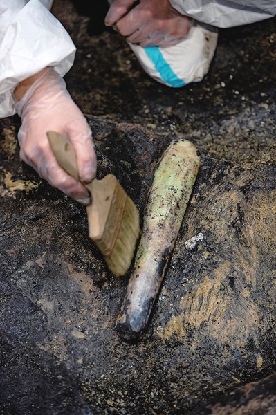 4号“祭祀坑”清理玉器 本版图片均据新华社发
