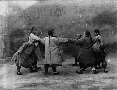 何德兰特别调查了孩子们所玩的游戏,他发现这是“一座迄今为止还没有被人发现的宝藏”,游戏的种类多到无法统计到底有多少种。孩子们凑在胡同口,只用木棍、石块、头顶的辫子等简单的道具,甚至什么也不用,都可以玩得兴奋不已、笑声不断。