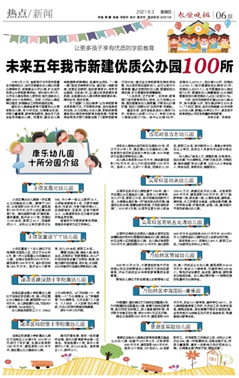 未来五年我市新建优质公办园100所