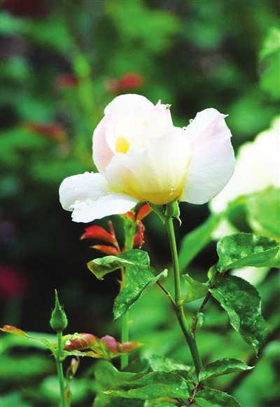 我突然想起好友海风发来的一首赞美月季的诗,马上打开手机给老伴朗诵起来:“独步公园沐微风,雕栏月季正摇红。有心撷韵兰笺里,留得芳华养眼瞳。”此情此景,真是让人感同深受,流连忘返。我告诉老伴,我市正在实施“玫瑰之城,浪漫之都”的建设工程,种植了上百万株月季、玫瑰,形成了“绿染龙城,花满并州”的景观效果。