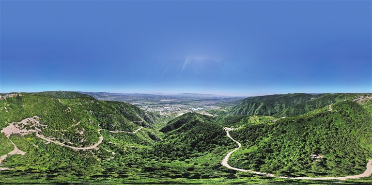 仲夏时节,驱车走柴化路,沿蜿蜒盘旋公路,一路攀爬直抵崛 山山顶,只见满山松柏、郁郁葱葱。位于汾河西岸的崛围山,呈南北走向,海拔1400米左右,山脉峰高林密、山势陡峭。“崛围”两字,即是指山路弯曲、道路非常曲折之意。