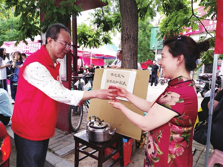 当时,赵斌涛听了十分感动,在心里打定主意,如果他的儿子考上心仪的学校,来年,他也要在此免费给考生和家长提供帮助,将这份爱心传递下去。2020年,赵斌涛的儿子如愿考入北京电影学院,实现了自己的人生理想。所以,今年高考期间,赵斌涛熬好绿豆汤,为今年的考生和家长提供爱心服务。