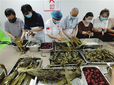 端午节即将到来,6月8日下午,市第二人民医院组织员工一起动手包粽子,赠送给住院患者和“百院兴医”施工现场的农民工兄弟。