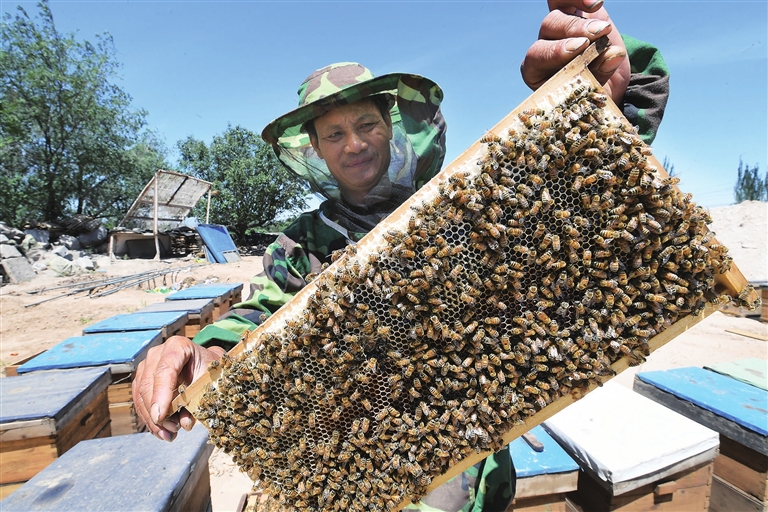 说起自己的养蜂史,赵仕杰颇多感慨:“我一辈子养蜂,蜂也养了我一辈子。16岁高小毕业,17岁进入村里集体蜂场养蜂,我的师傅郝保元,是太原市养殖西方蜜蜂的第二代传人,我是第三代。这一养就是50多年,见证了传统养蜂法到现在的现代科技养蜂法,经历了从集体化到个体再到合作社的变化过程。1982年我患了脉管炎,腿足疼痛,不能走路,只能边养蜂糊口,边看病勉强度日。1990年,我截去右下肢后,生活更加艰难,残联帮我免费安装了假肢,我重新站了起来。我是个不服输的人,暗下决心重振家业。孩子们初中毕业后因家贫放弃了学业,儿子加入了我的蜂场。经过全家的努力,克服了种种困难,养蜂规模越来越大,收入也随之增加。”