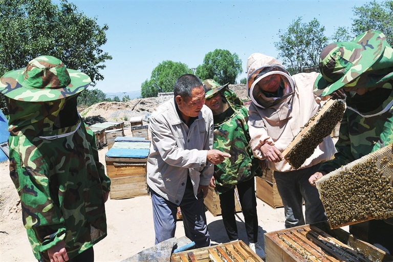 在赵仕杰看来,养蜂是残疾人最适合的脱贫项目之一。阳曲县有独特的养蜂蜜粉源条件和地区优势平台,加之上世纪90年代的退耕还林,种植了几十万亩的洋槐树,形成了养蜂的天然蜜粉源优势。养蜂也不是重体力活,残疾人都能干。赵仕杰这么想,更是这么干的。在残联的支持下,赵仕杰带着技术,对残疾人养蜂户上门指导,还建了养蜂技术交流群,每天在网上讲解理论知识并远程指导,除本县蜂农外,还带动了娄烦县的残疾人增收。如今养蜂技术交流群已经发展到30多个,瑞兴合作社也由成立时的5户200群蜂发展到30户近2000群蜂,年生产蜂蜜60吨,2016年被定为残疾人扶贫基地。