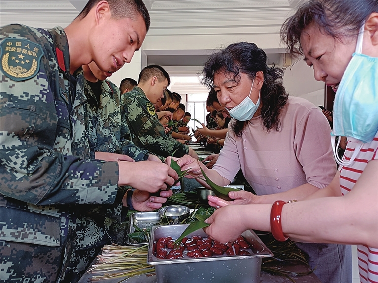 6月10日上午,庙前街道水西关街四社区党总支组织辖区党员、居民,前往省委警卫连开展了“建党百年军民庆 粽叶飘香情更深”主题党日活动,军民同包粽子,共迎端午佳节。