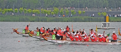 公开组竞技水平较高,山东队、河北队、陕西队等几支省外队伍,是由中国龙舟协会协助邀请来的劲旅。一番比拼,河北队在200米、500米、3000米项目中均获得了第三名。“河北龙舟队是2015年成立的,经常去全国各地参加比赛。”51岁的尹大勇介绍说,“平常我们每个周末会训练一次,队员们工人、教师、警察都有,大伙儿来自各行各业。”