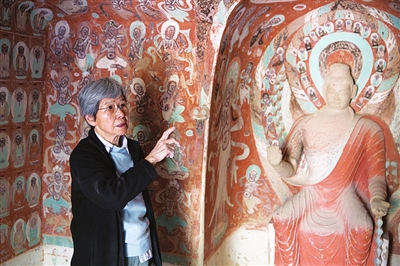她是敦煌研究院名誉院长樊锦诗。1938年,祖籍杭州的樊锦诗出生在北京,自1963年大学毕业后,她便开始了与莫高窟长达半个多世纪的相守。在她和同事的努力下,莫高窟在1987年成为中国首批进入世界文化遗产名录的遗产地,并逐步成为世界文化遗产保护和利用的全球典范。