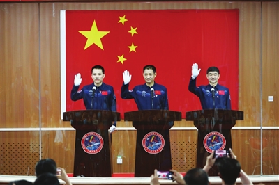 记者:6月17日,你们将代表国家出征太空,还将在太空中迎来建党一百周年的喜庆日子。此时此刻,有什么想说的话?