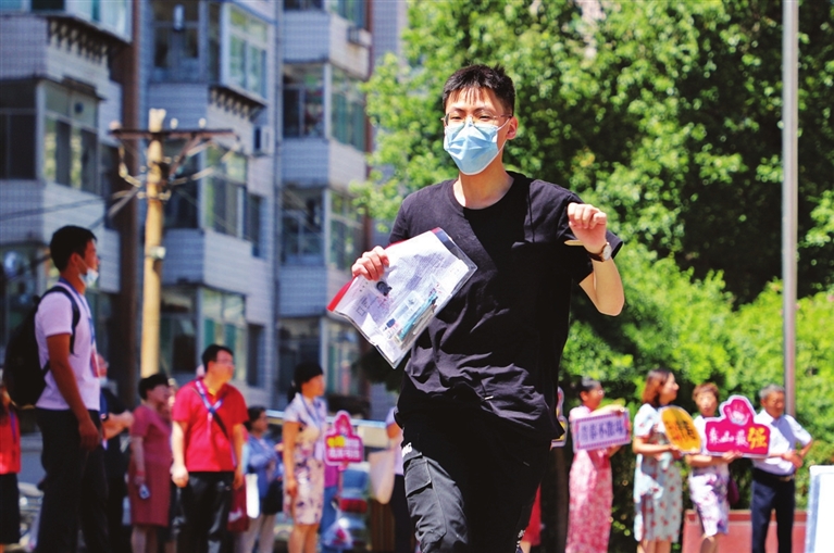 6月20日上午,2021年太原市中考正式拉开帷幕。今年,全市共有44159人报名参加考试。图为太原市五中考点,考生完成了上午的考试,走出考场。 米国伟 张昊宇 摄