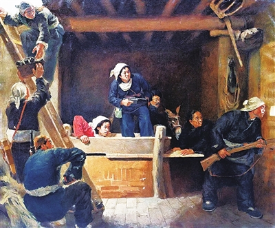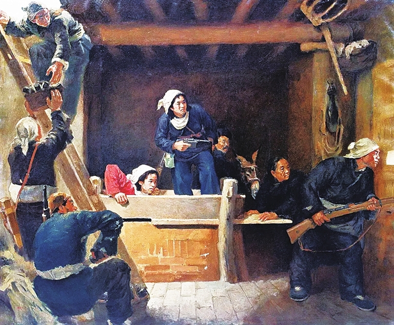 冀中的地道战,是中国共产党领导人民进行全面抗战的一个缩影。地道战战法使华北构建起一套立体式作战系统。被称作“地下长城”的各个地道网,成为中国共产党领导的八路军与华北日军作战的重要依托。毛泽东指出,兵民是胜利之本。通过《地道战》这幅油画,可以真切感受到,当年在敌强我弱的条件下,人民群众在党的领导下发挥智慧,通过各种方式对日军持续抵抗,不断牵制、消耗日军,最终取得了抗战胜利。