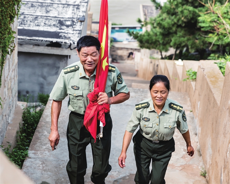 王继才夫妻俩每天做的第一件事就是在岛上升起五星红旗。