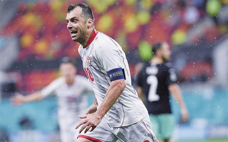 凭借一张外卡,潘德夫带着一帮20岁左右的小伙子杀入欧洲杯预选赛决赛,对阵格鲁吉亚时他完成绝杀,世界排名60名开外的北马其顿首次闯入国际大赛。小组赛首次亮相,北马其顿1比3不敌奥地利,唯一的进球来自穿着10号球衣的潘德夫。这个腆着啤酒肚的大叔,到了门前却灵活得像只兔子。这是北马其顿在国际大赛的首粒进球,这一天,潘德夫37岁又321天,他成为欧洲杯历史上运动战破门年龄最大的球员。